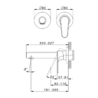 Parte externă pentru baterie monocomandă lavoar de perete, fără piesă încorporată, pipă de scurgere L.200 mm, pentru articolul